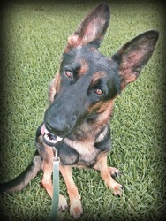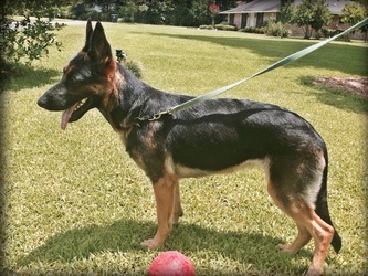 Introducing Josey, a gorgeous 18-month-old female GSD. Josey is a fully-registered GSD with a full pedigree. In fact, she's got several "vom Kirschental" dogs in her family tree--one of the most famous old German kennels known for West German show lines.