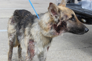 Milo's just a year old. Dr. Kristen will help Milo make a full recovery. He'll likely lose all his hair as part of the healing process, but it will grow back. He'll transform back into the cute, adorable pup he's supposed to be.