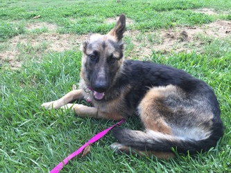 This baby girl has a very sweet personality. She is an affectionate dog who loves to snuggle with her foster family. She loves to be in her person's lap. Like many GSDs, she is very vocal and likes to "talk."