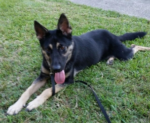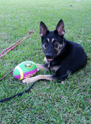 Because Dahlia is still young, she is still mouthy with people when she gets excited and plays. This is very normal in Shepherd puppies, but it can be annoying to people unfamiliar with it. We thus don't recommend her for a home with tiny children. She requires an adopter who understands how to redirect this behavior and patiently help her grow out of it.