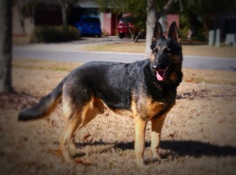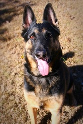 King is trying to slim down because his former owner allowed him to get a little "portly." In this breed, we urge our adopters to keep their dogs lean -- it's better for every GSD's hips and elbows to not be carrying around extra weight over their lives. King is looking for an adopter who will commit to a keeping him at a healthy weight, with reasonable exercise.