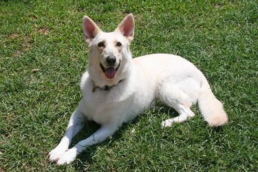 Pearl is an adult female German Shepherd estimated to be 5 years old. She's a medium-sized for the breed, around 65 pounds.
