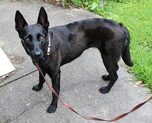 Raven is a beautiful, young black adolescent female. We believe she is either a purebred Malinois or a Malinois/Dutch Shepherd cross. She's a phenomenal dog for an experienced owner who understands working breeds.