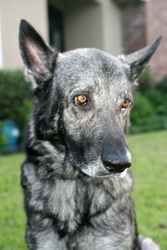 Renegade is a magnificent sable-colored German Shepherd Dog. He's about 6 years old, an adult in his prime. He's a very large male, with a strong, imposing build. He's been a gentle giant in foster care.