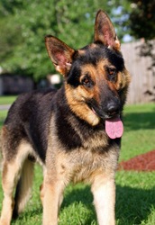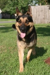 Sergeant is a handsome, male German Shepherd Dog. He will be a large, substantial dog once he gains his full weight. He recently weighed in at 78 pounds, but he needs some "groceries" to put some weight on. Our best guess is that he's around 4 years old -- an adult in his prime.