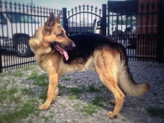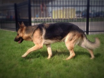 Like any young GSD, Tate has a lot of energy. He loves to romp and play hard with other fun-loving dogs. He is able to calm down easily once he comes inside though.