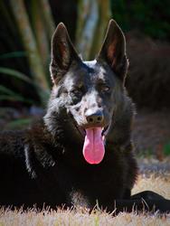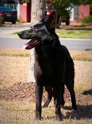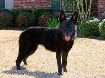 Zelda is a young, female, all-black German Shepherd Dog. We estimate she's only about two years old--still and adolescent.