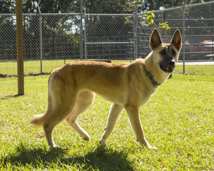 She's already crate-trained and house-trained. However, she can climb fences, so she should not be left unattended in a yard.