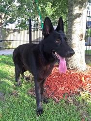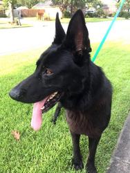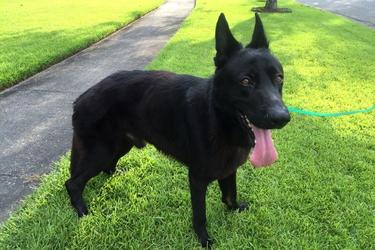 Zep is an all-black German Shepherd Dog. We think he looks like he's purebred--don't let his all-black coat fool you, as this color is a classic German Shepherd coat color.
