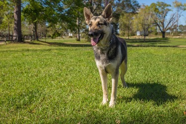 She a extremely intelligent dog who would benefit from some additional training. She will be a joy to take through an obedience class, likely becoming the star of the class with just a little work. She already knows how to sit, and she responds well to verbal cues. She is house trained.