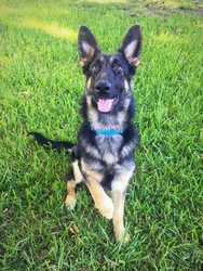 Like any GSD puppy, Logan will explore and get into mischief if not supervised. He wants to be taught the right thing to do. He can be a little noisy, especially when his person leaves the house (he howls occasionally, but not for long). He may not be suited for apartment living, for that reason.