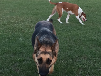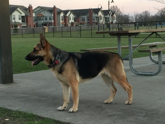 Misty (a/k/a "Misty Roux") is a beautiful, young German Shepherd Dog. She's about a year and a half old. She weighs approximately 65 pounds.
