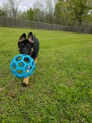 She loves toys, playing fetch, and chewing...anything. She's playful, affectionate, and full of spunk.