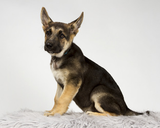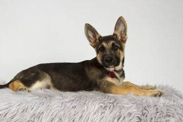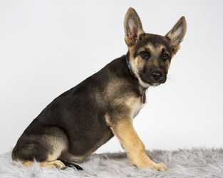 If you already know how time-intensive (and exhausting) GSD puppies can be, and you're up for having your shoes and landscaping destroyed, your hands and toes chewed on, and holes put in your favorite pants, and you have the patience, know-how, and time to raise, socialize, and train this breed (and have great references), you're our kind of puppy adopter! We can't guarantee he's purebred, but he looks like it to us. However, what you see is what you get with puppies--there are no pedigrees or promises about what they'll look like when they grow up. He and his littermates were left in a city animal shelter as babies after their breeder couldn't sell them fast enough, so we don't know anything about their prior life before rescue. We've promised that he'll never be left behind again, so adopting is a life-long commitment for 12+ years.