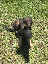 If you already know how time-intensive (and exhausting) GSD puppies can be, and you're up for having your shoes and landscaping destroyed, your hands and toes chewed on, and holes put in your favorite pants, and you have the patience, know-how, and time to raise, socialize, and train this breed (and have great references), you're our kind of puppy adopter! We can't guarantee she's purebred, but she looks like it to us (and her mama was). However, what you see is what you get with puppies--there are no pedigrees or promises about what they'll look like when they grow up. She and her littermates were left in a city animal shelter as babies, so we don't know anything about their prior life before rescue. We've promised that she'll never be left behind again, so adopting is a life-long commitment for 12+ years.