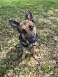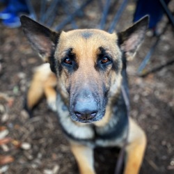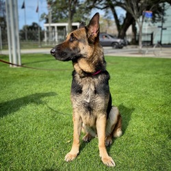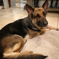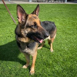Kate is a lovely adult female German Shepherd Dog. We estimate that she's around 5 years old. She weighs around 65-70 pounds.